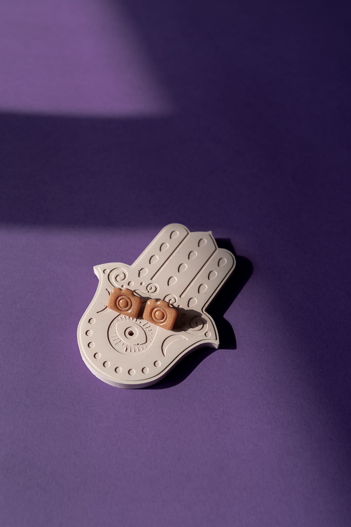 - wykonane z gliny polimerowej i żywicy, zapięcia ze stali nierdzewnej w kolorze złotym