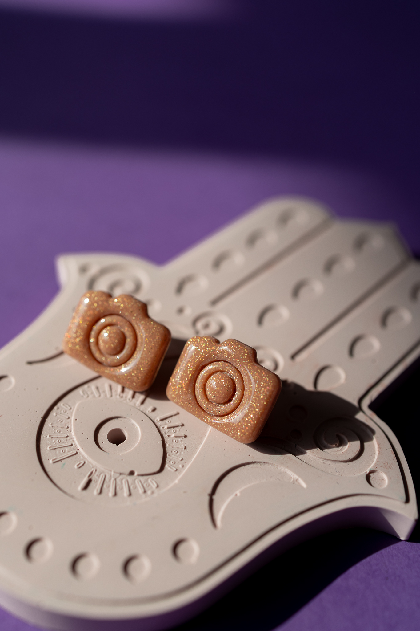 Kolorowe kolczyki sztyfty w kształcie aparatów: