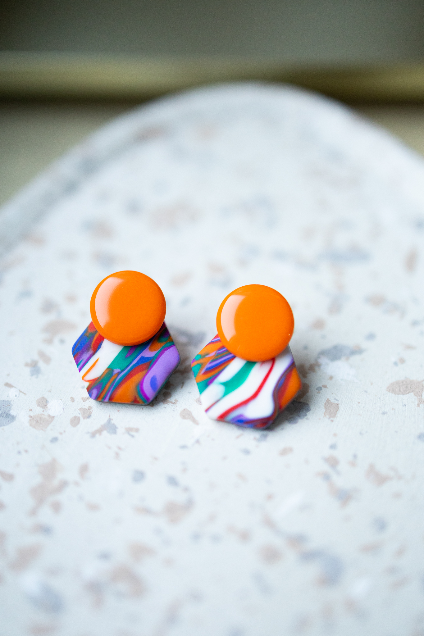 Kolorowe kolczyki sztyfty w kształcie heksagonów: