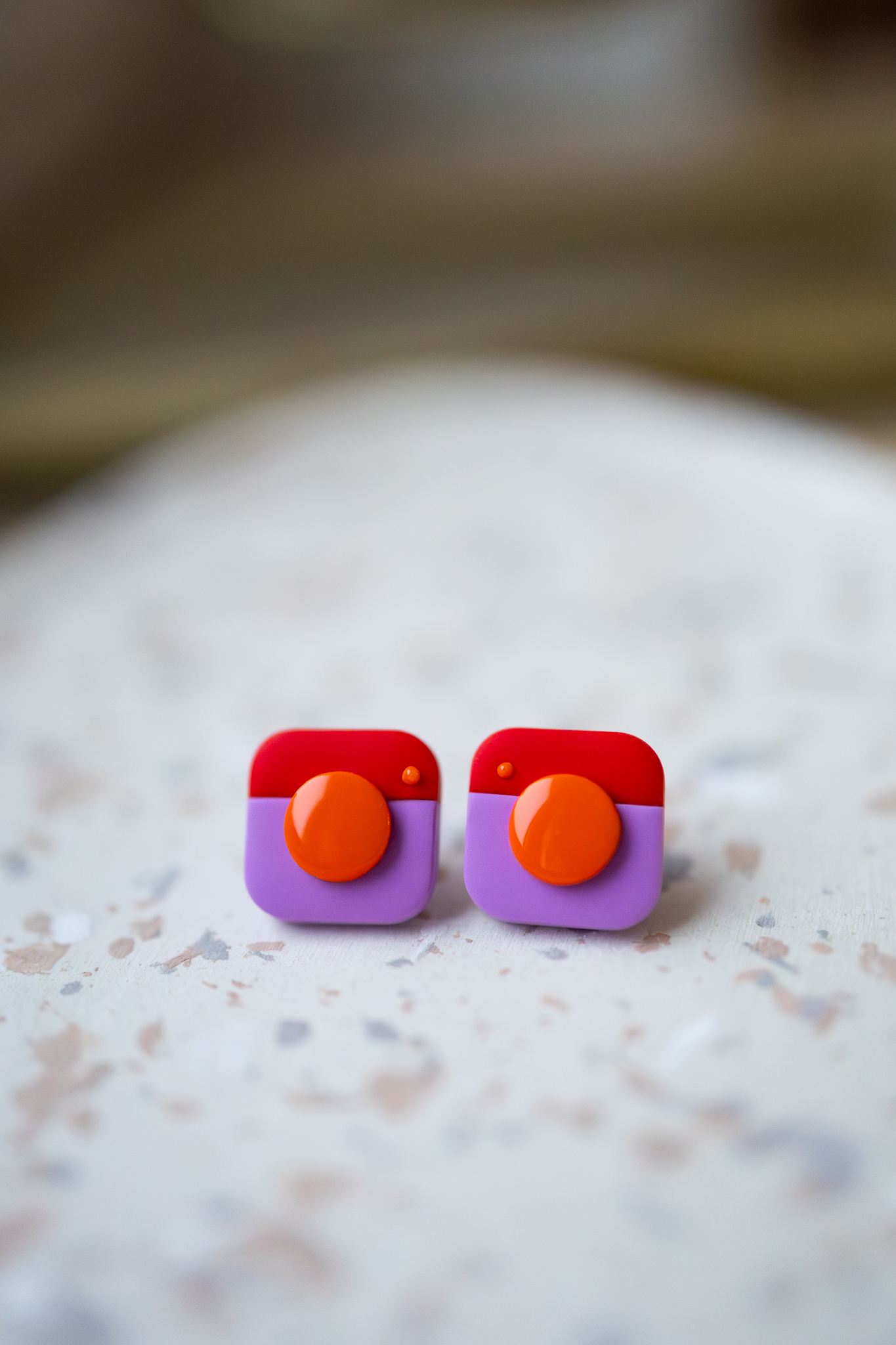 Kolorowe, minimalistyczne kolczyki aparaty na sztyfcie: